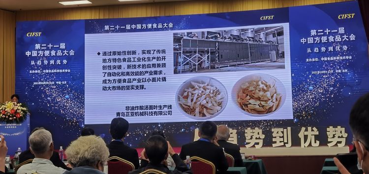 大會(huì)邀請多位行業(yè)專家及龍頭企業(yè)代表從多角度多方位剖析了行業(yè)面臨的現(xiàn)狀,展望行業(yè)未來發(fā)展。青島正亞機(jī)械科技有限公司很榮幸參加,并憑借“非油炸酸湯面葉生產(chǎn)線”榮獲“中國方便食品行業(yè)優(yōu)秀創(chuàng)新產(chǎn)品”獎(jiǎng)項(xiàng)。