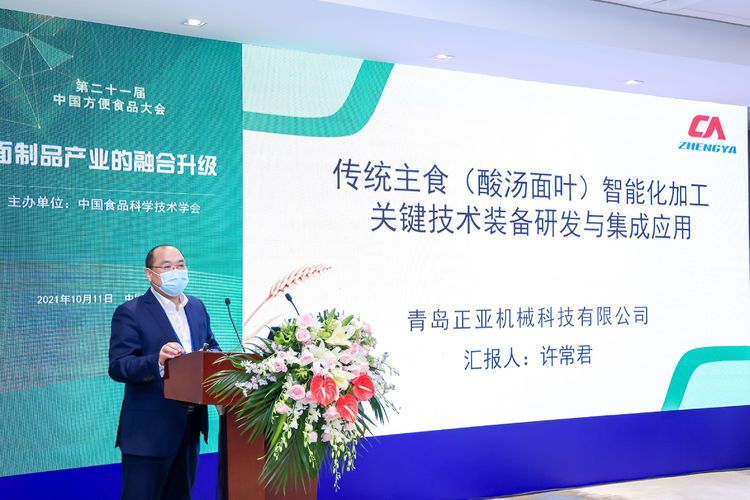 在10月11日“面制品產(chǎn)業(yè)的融合升級”專題會(huì)議中我司總經(jīng)理許常君先生以“智能化加工關(guān)鍵技術(shù)裝備研發(fā)與集成應(yīng)用”的主題分享了我司在研發(fā)傳統(tǒng)地方特色美食(酸湯面葉)工業(yè)化生產(chǎn)過程中的創(chuàng)新與突破。