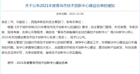 2021年12月6日,青島市科技局公示了2021年度技術(shù)創(chuàng)新中心建設(shè)名單,青島正亞機(jī)械科技有限公司在眾多參選企業(yè)中脫穎而出,成功入選。